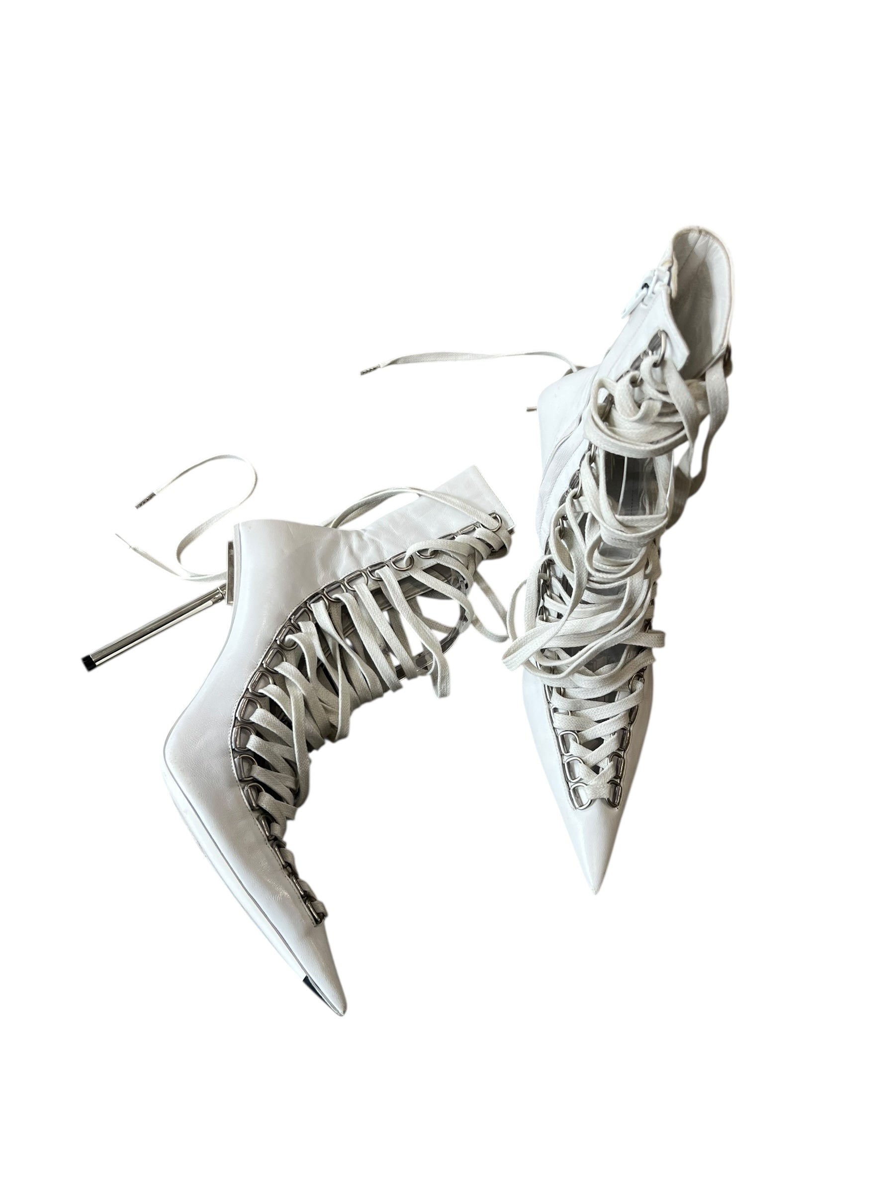 BALENCIAGA S/S 2020 CORSET LEATHER HEELS, WHITE