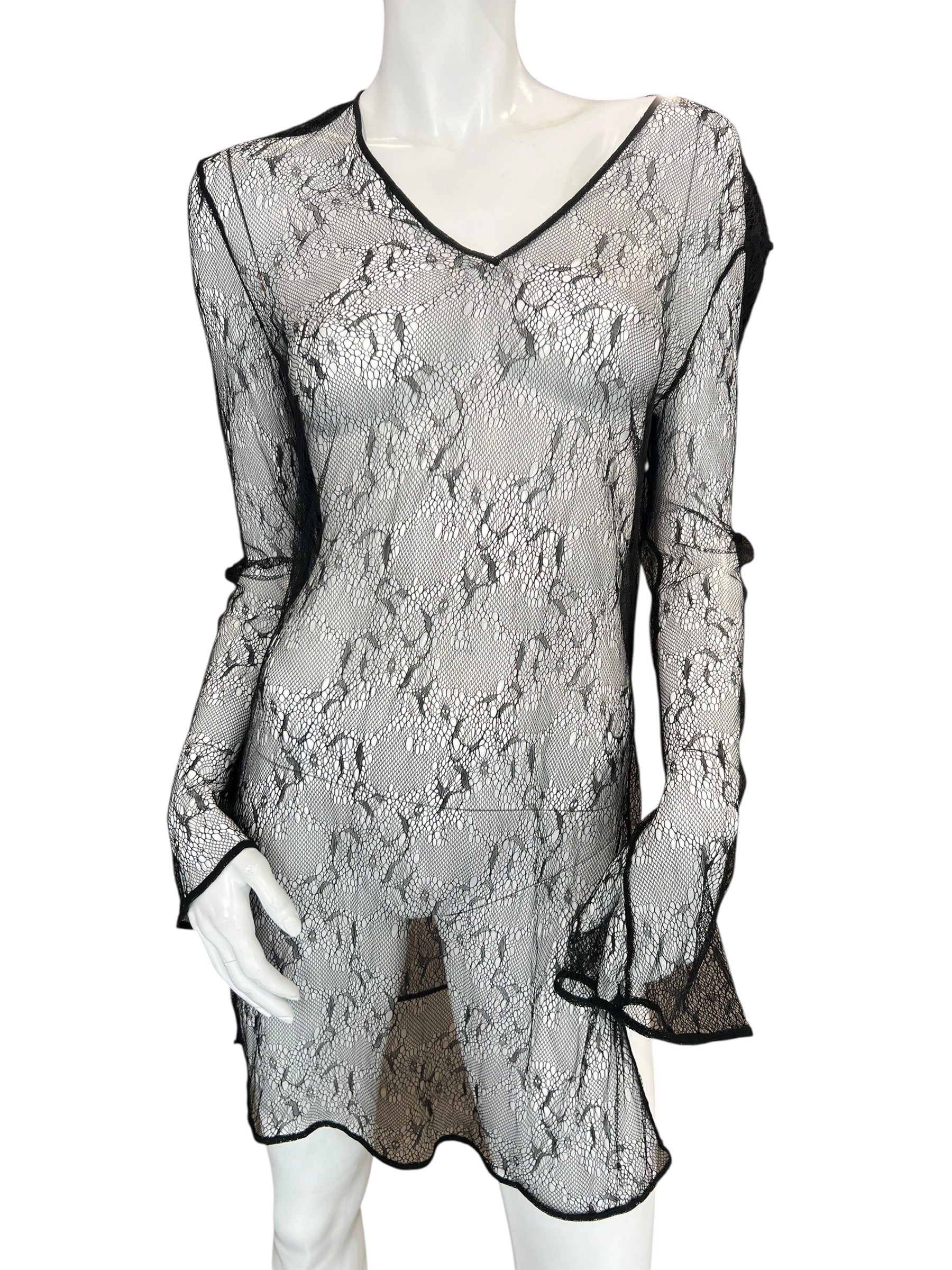 D&G LACE SHEER TOP, BLACK