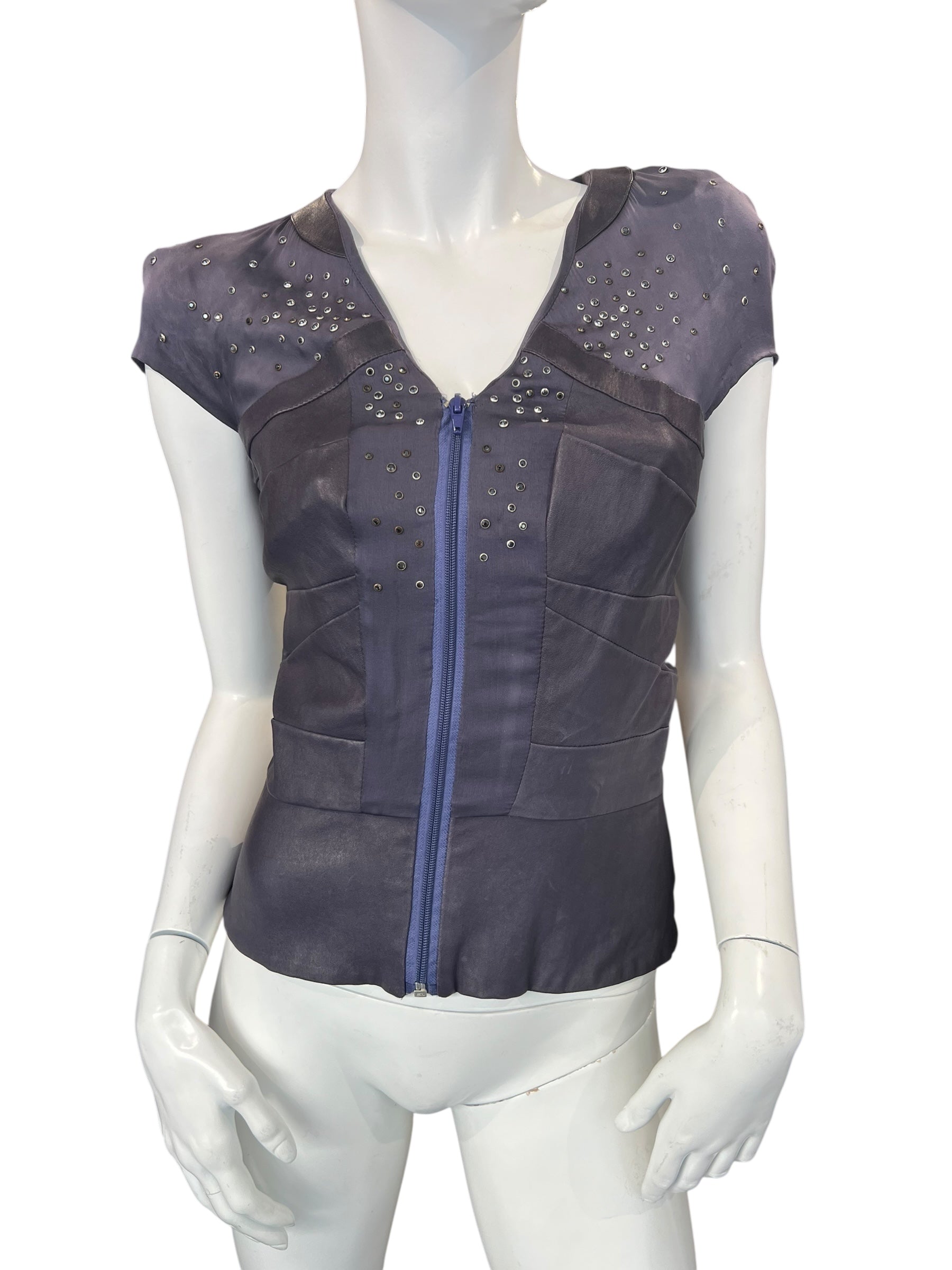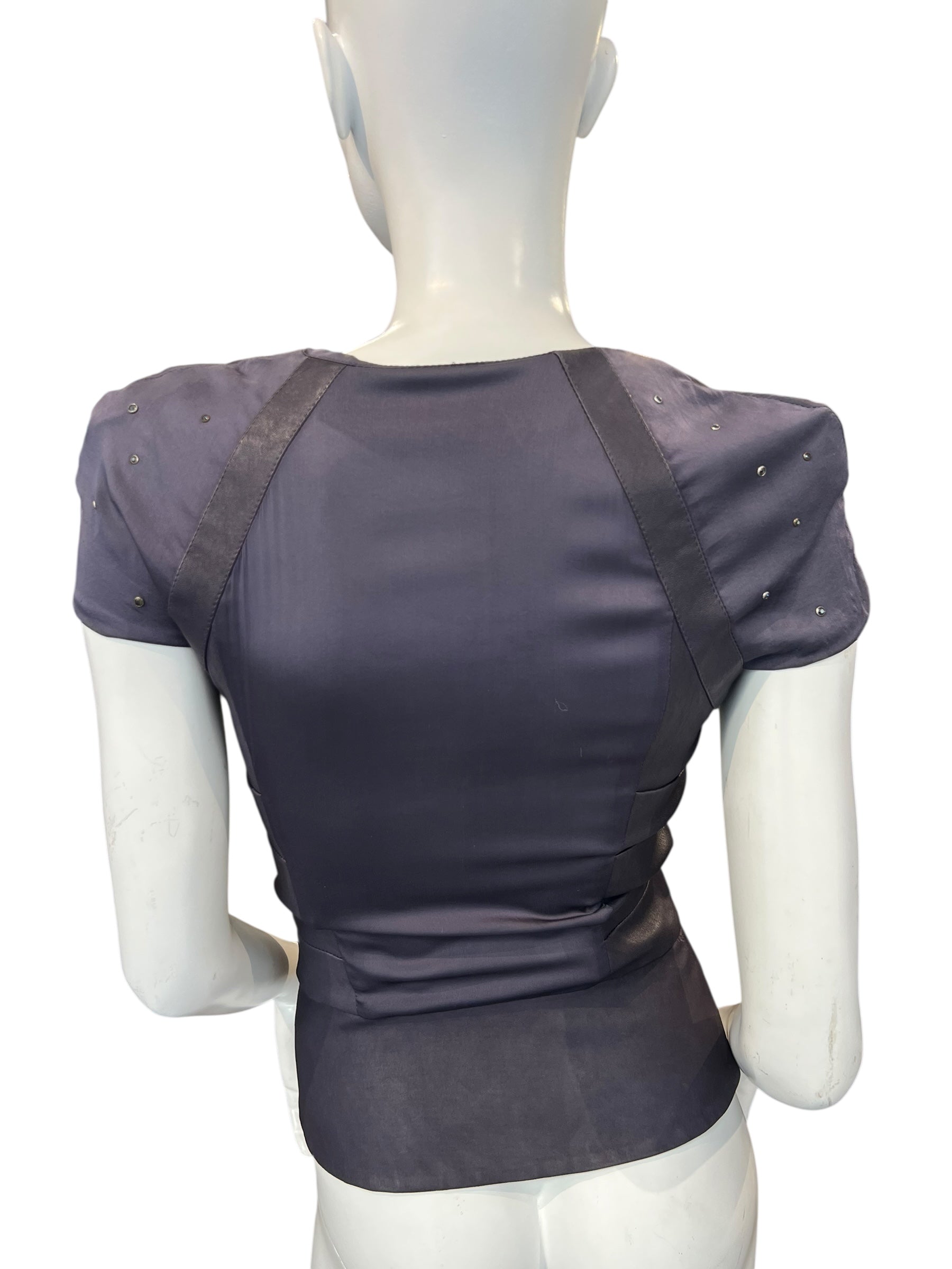 JITROIS LEATHER & SILK TOP, PURPLE