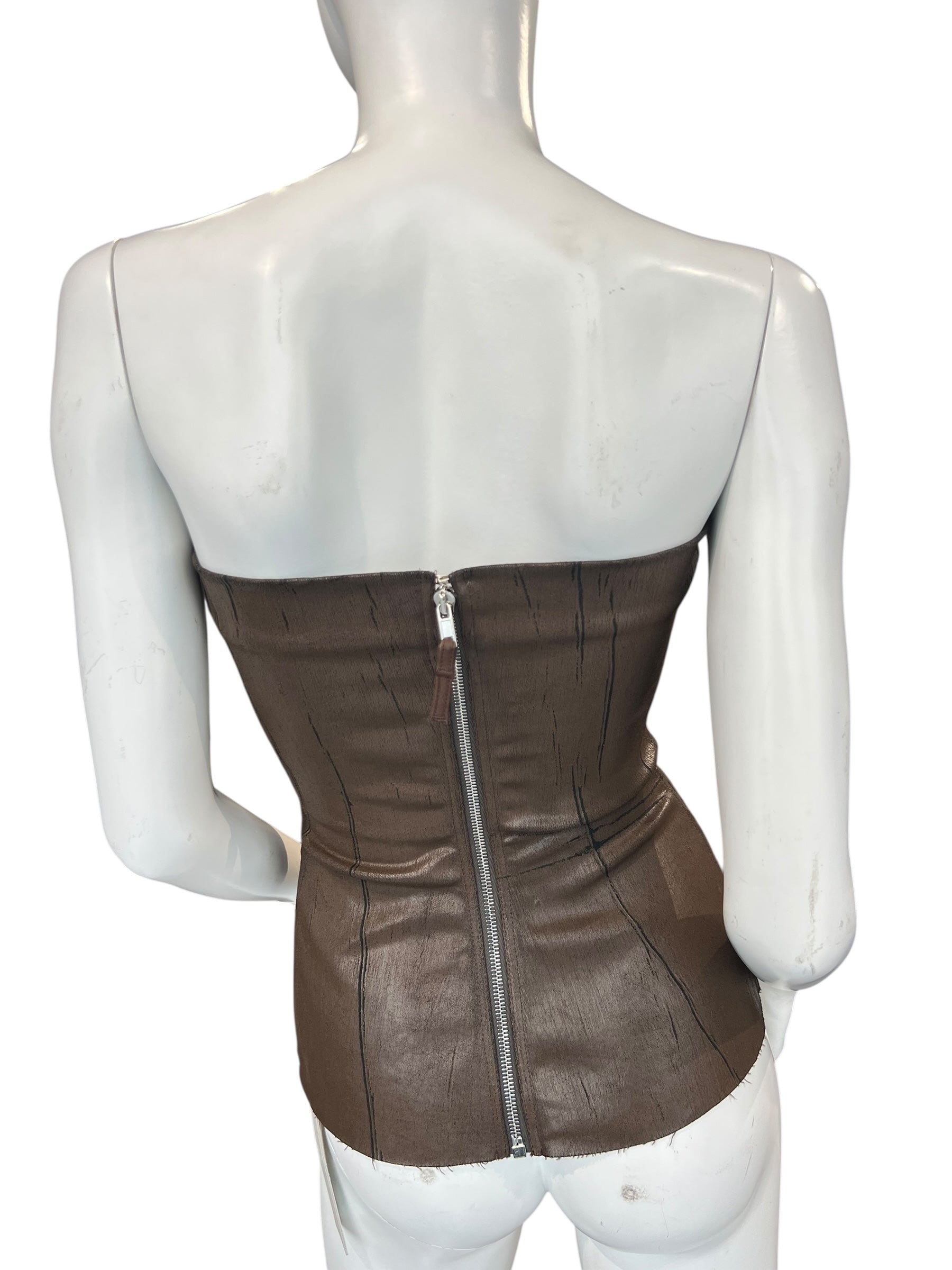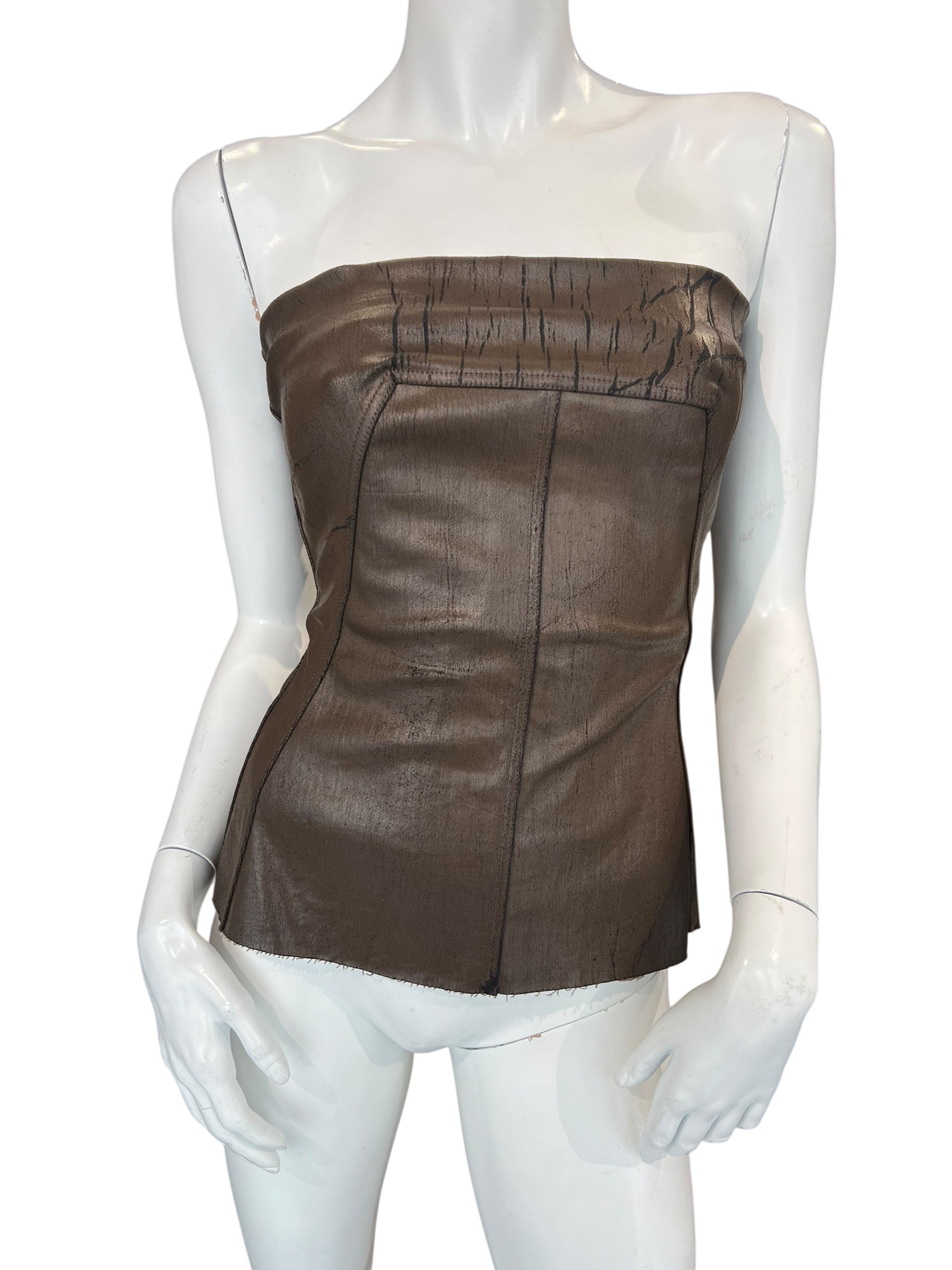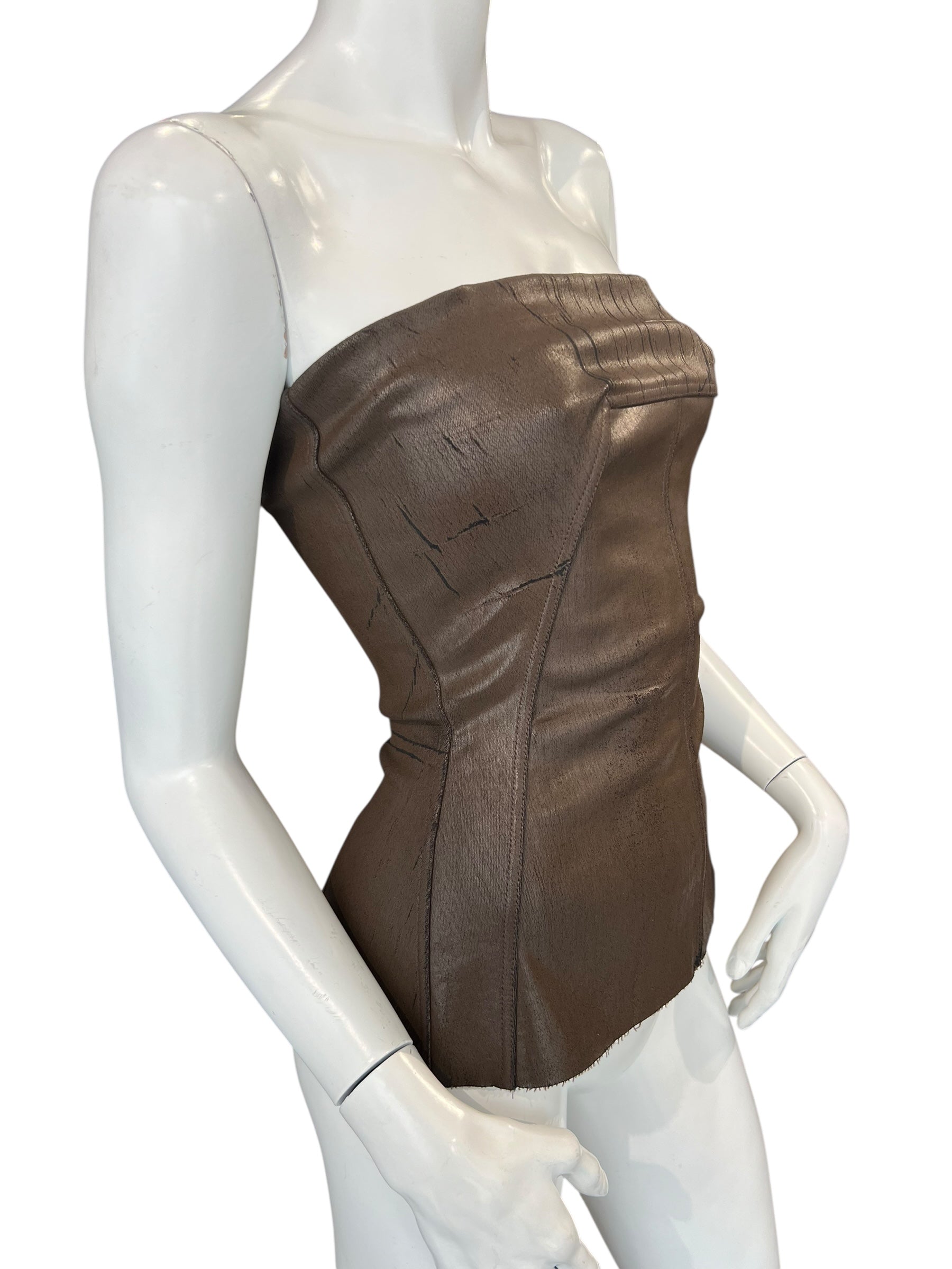 RICK OWENS F/W 2023 BUSTIER TOP, DENIM BROWN