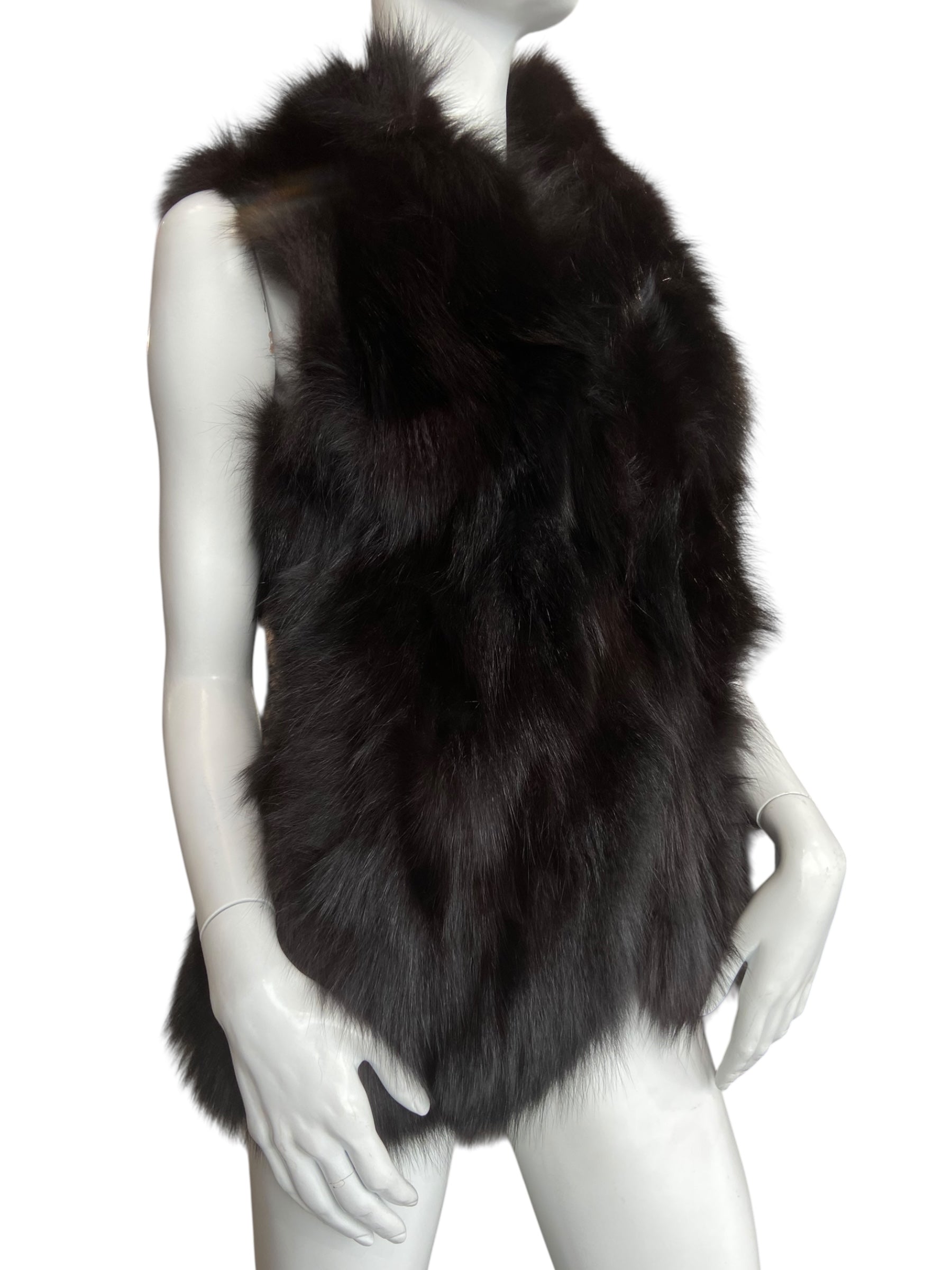 VINTAGE FOX FUR SLEEVELESS VEST, BLACK
